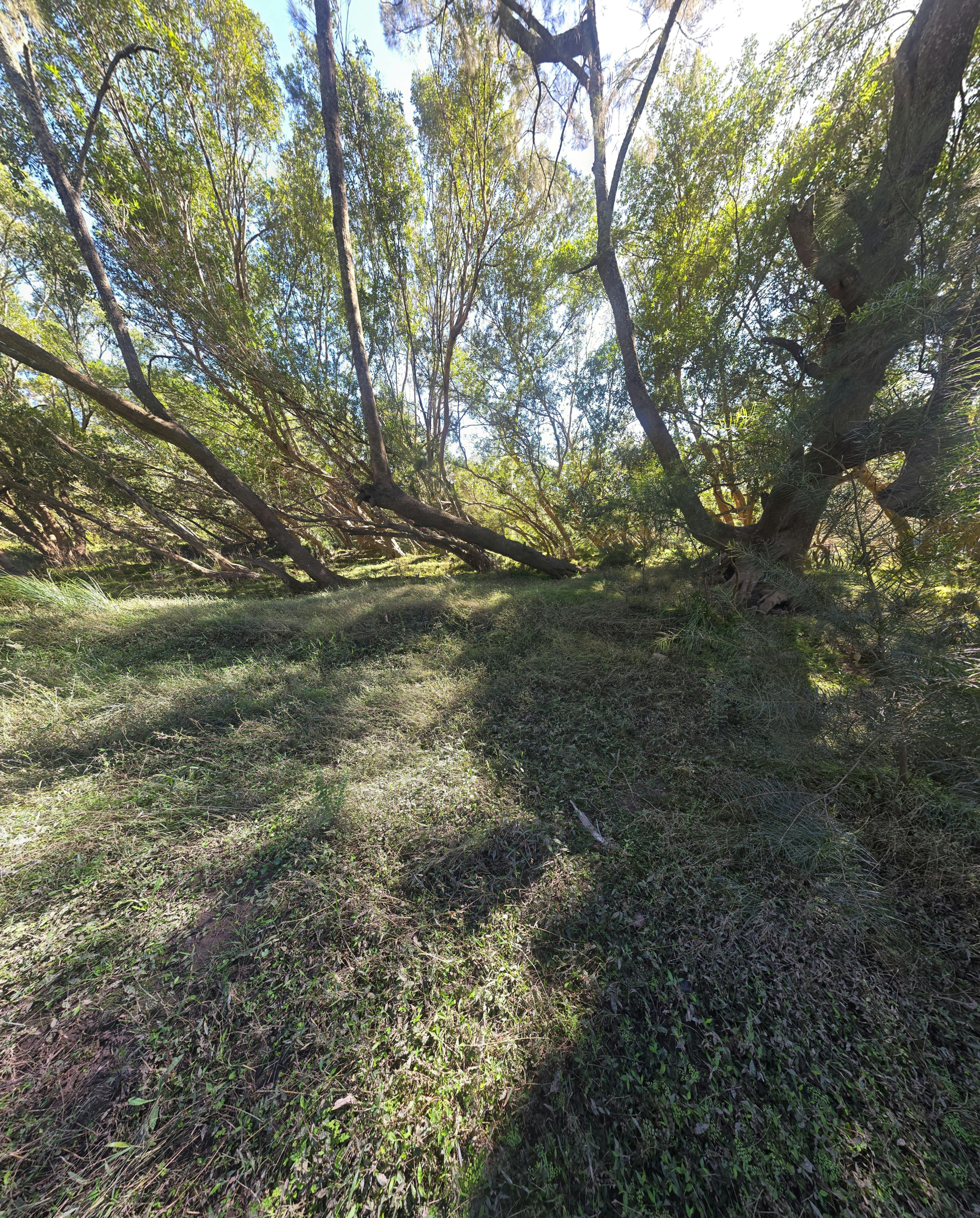 Old Jinker Crossing is a secluded campsite located at the Head of the First Flat, nestled under the shade of casuarina and water gum trees. It's an intimate and tranquil space, ideal for smaller groups or families with tents or pop-top campers.