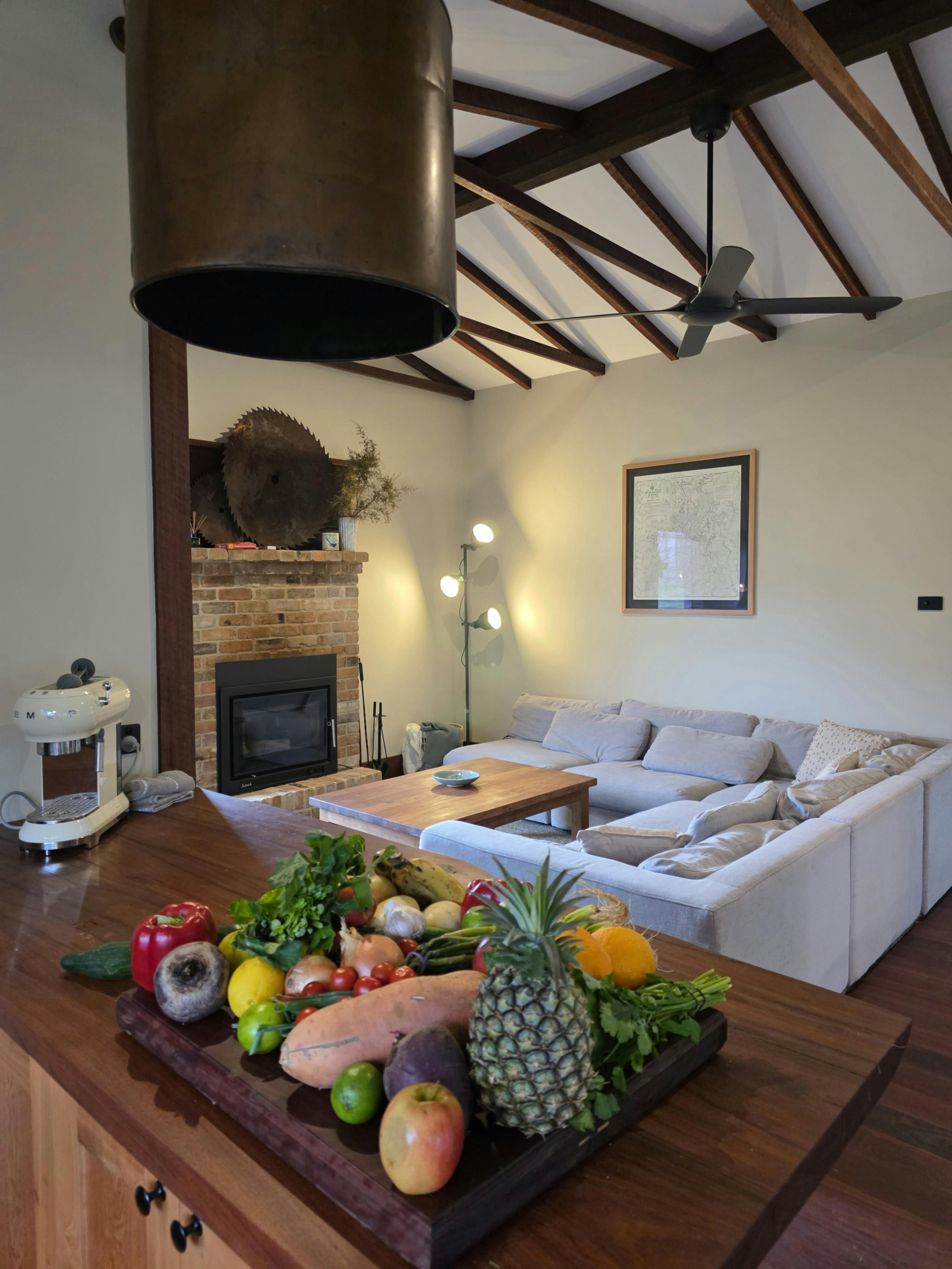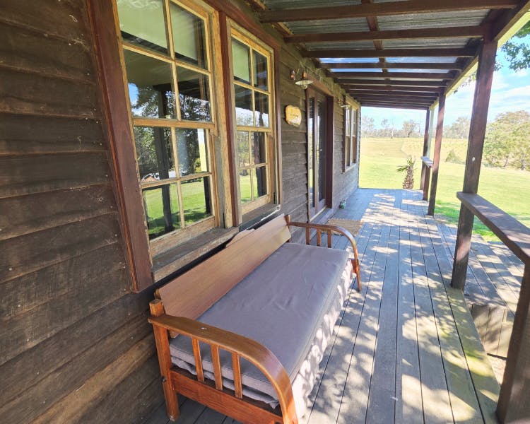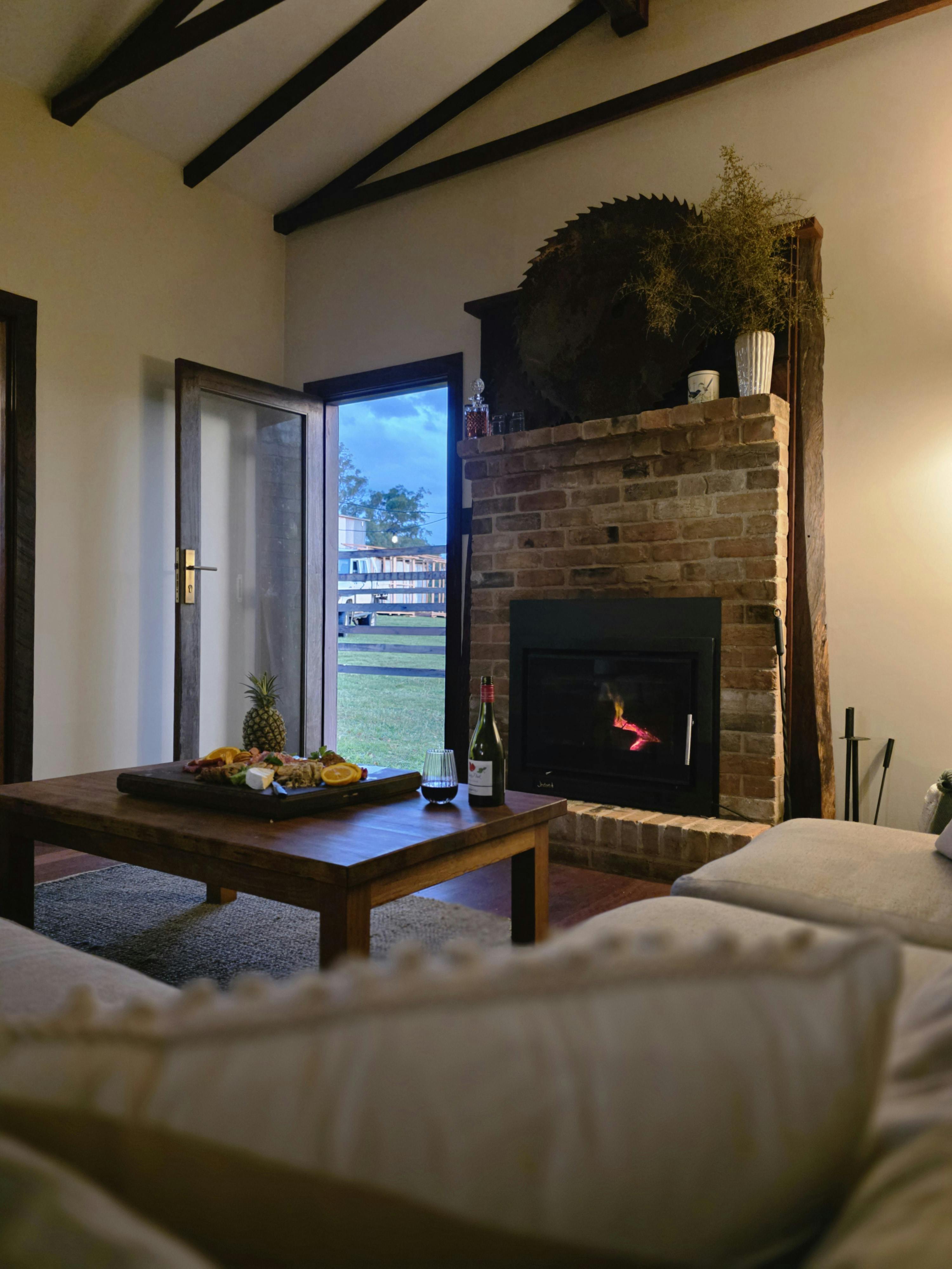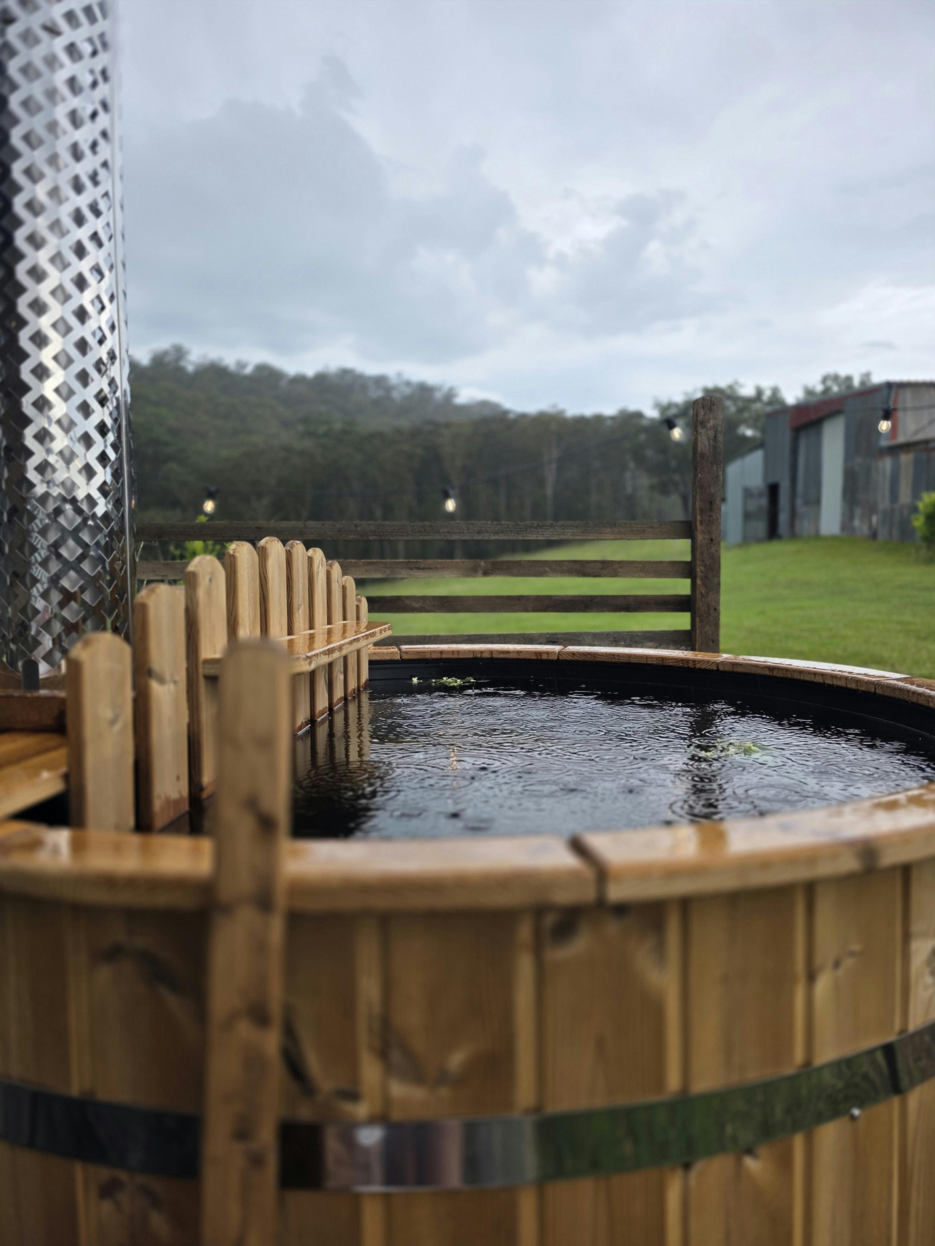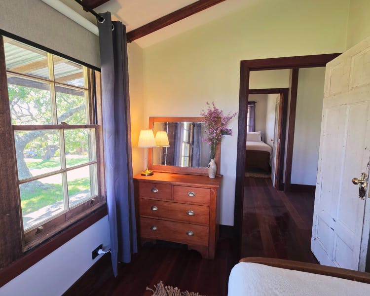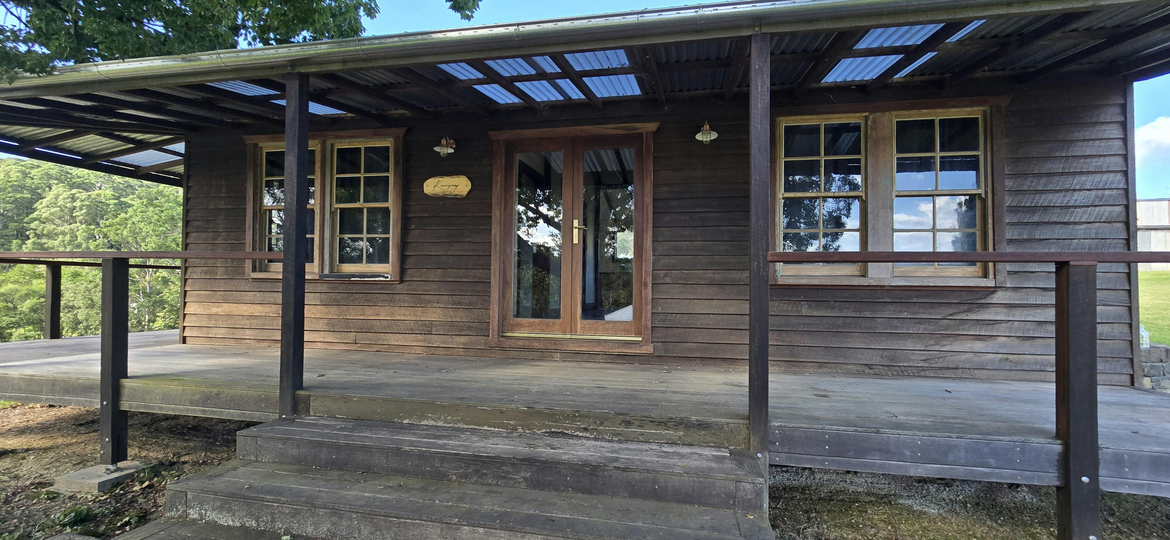 Kurrajong House is a beautifully restored three-bedroom timber worker's cottage perched on a hill, offering a serene escape separate from the other homes in the Old Saw Mill Town. The master bedroom features a luxurious king-sized bed and a cozy open fireplace. The two single bedrooms are perfect for small groups or families. For an added touch of luxury, unwind under the stars in your newly installed Baltic wood-fired hot tub. This traditional outdoor tub is heated by a separate wood fire, creating a deeply relaxing and authentic experience. The home includes an open-plan living, kitchen, and dining area, and a bathroom with a spacious shower, toilet, and vanity. A large verandah wraps around the home's northern and western sides, offering breathtaking views of the sunrise and sunset from an elevated vantage point.
