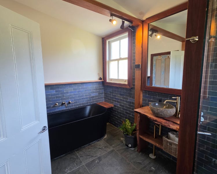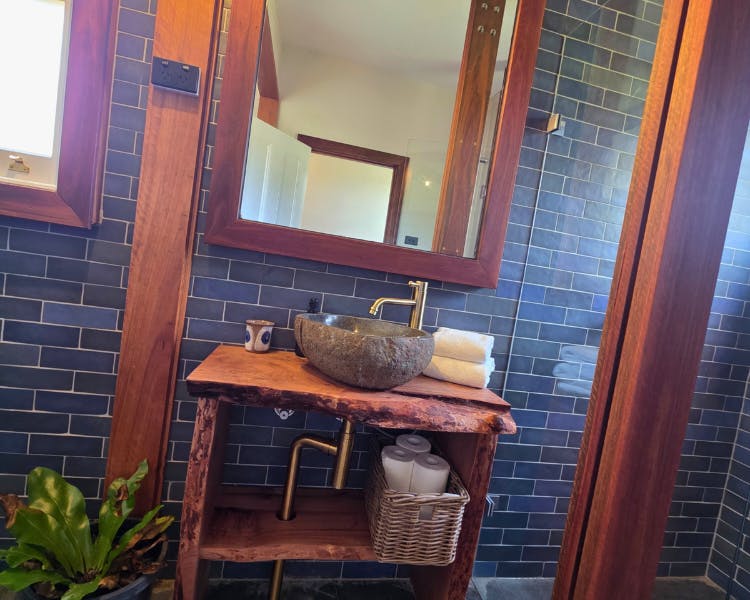 This cottage is one of six original timber worker houses in Brooman's Old Saw Mill Town. Built in the 1920s, the building originally served as the town's dance hall before being converted into lodgings for mill workers. The home has been lovingly restored using materials sourced directly from the property, including the handcrafted Coachwood vanity and the expansive timber deck.