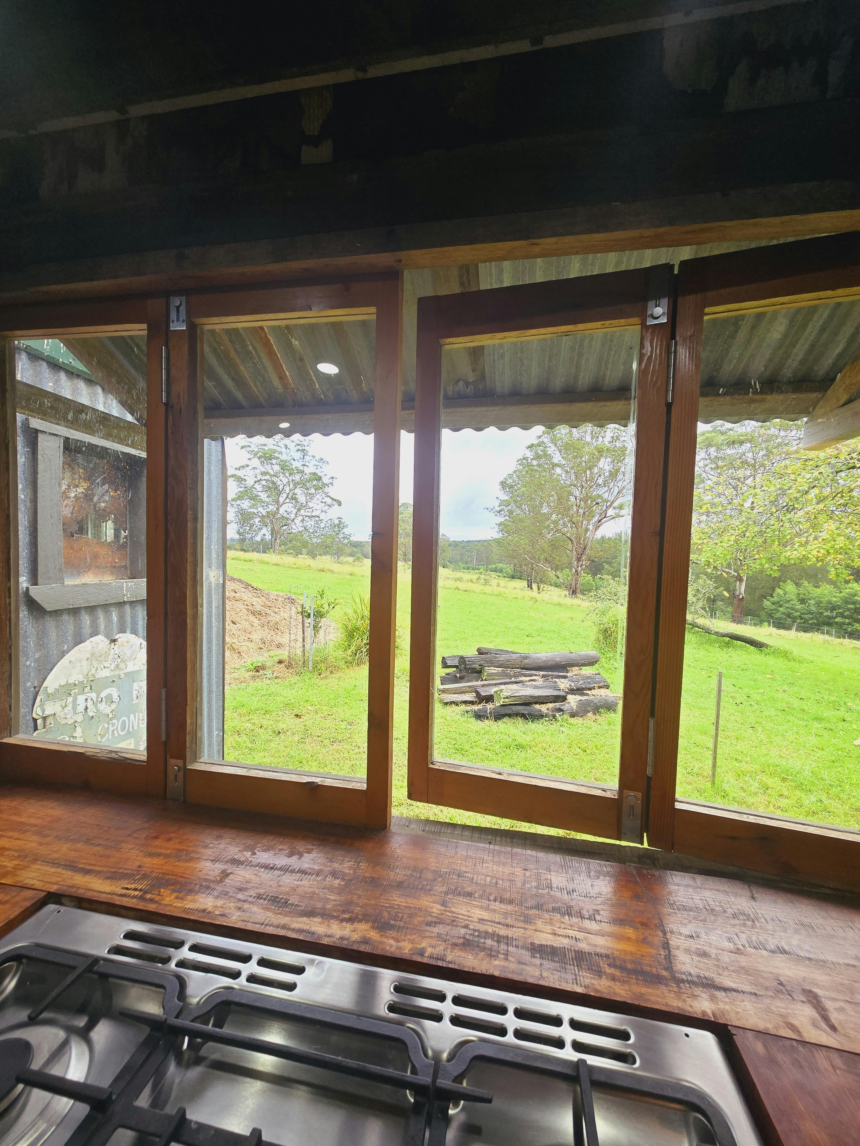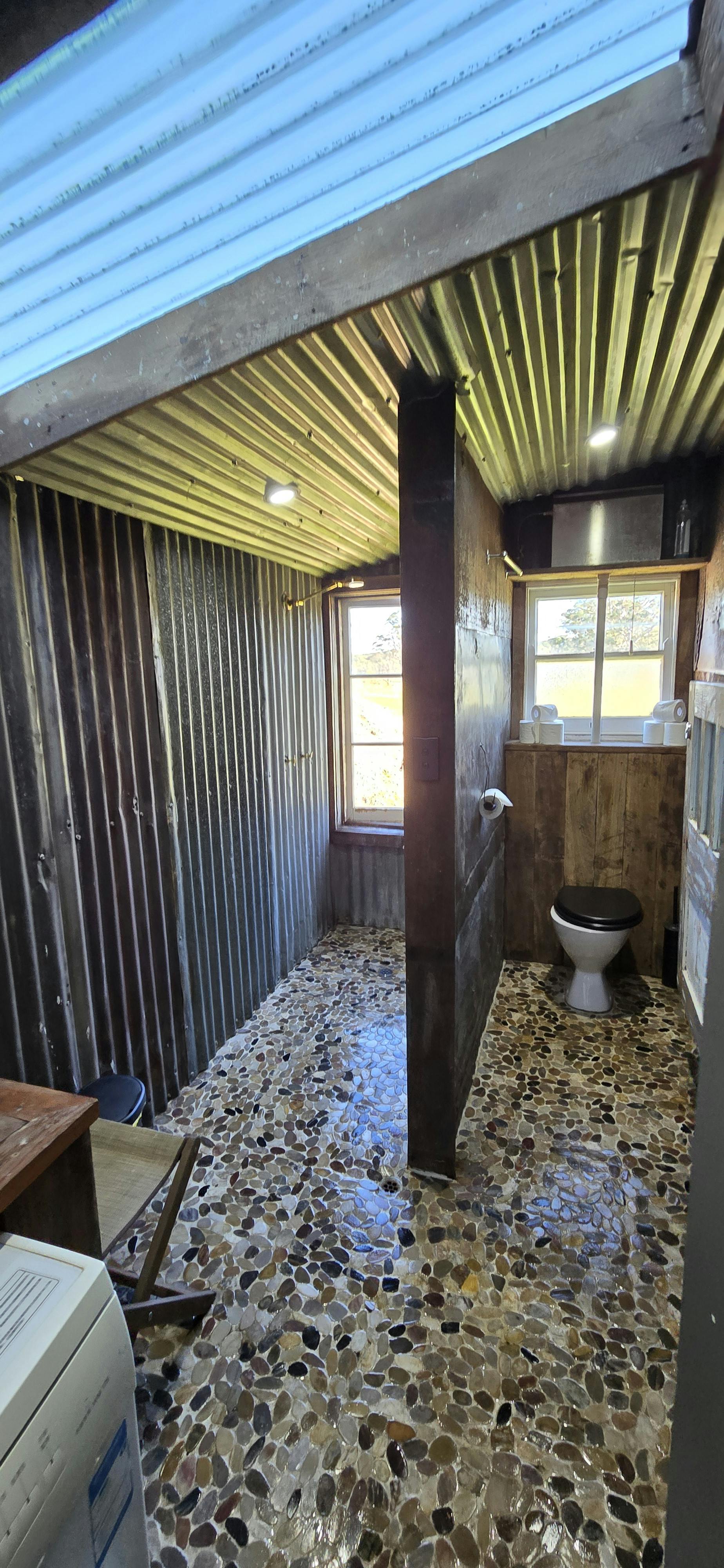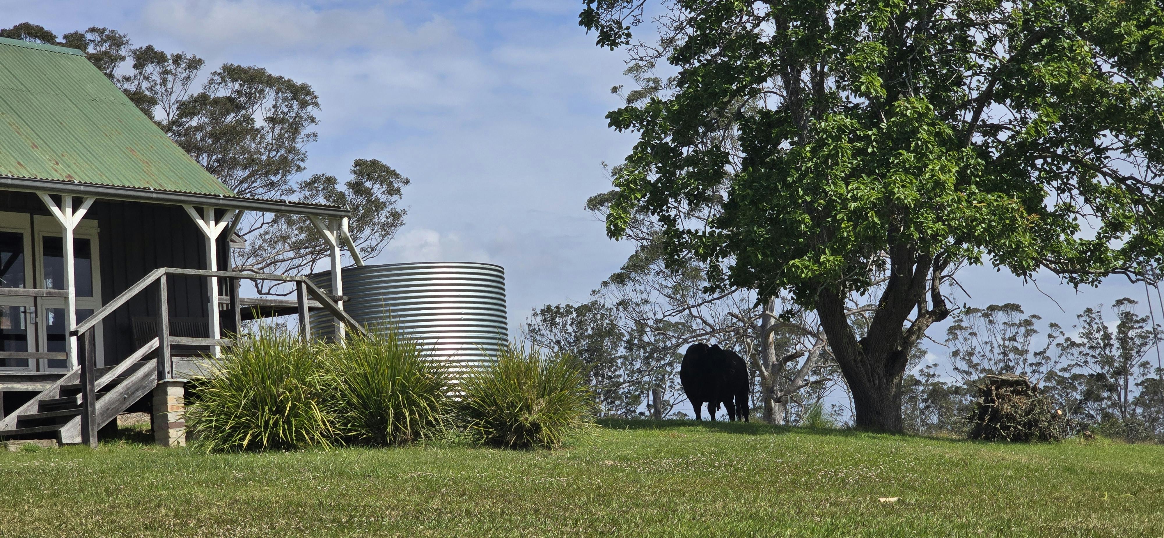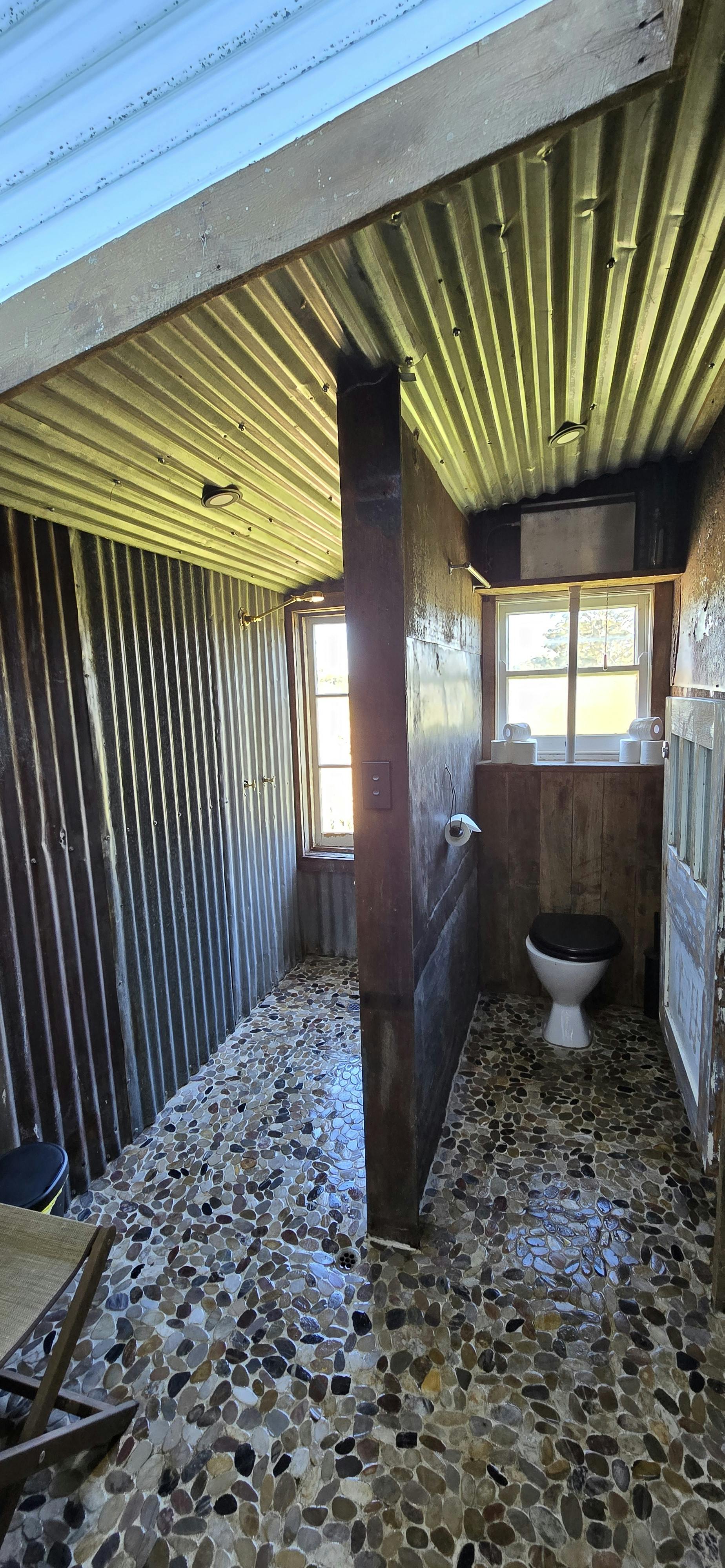 The property is completely off-grid and powered by a central solar system with underground 240V power. Water is collected and stored in galvanised iron tanks, and an instantaneous gas water heater provides hot water.